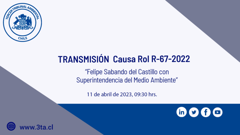 El Tercer Tribunal Ambiental pone a su disposición la transmisión de la audiencia de alegatos modalidad híbrida de la causa “Felipe Sabando del Castillo con Superintendencia del Medio Ambiente”, que se realiza el martes 11 de abril a las 09:30 hrs; ante los Ministros Sr. Javier Millar Silva; Sra. Sibel Villalobos Volpi; y Sr. Iván […]