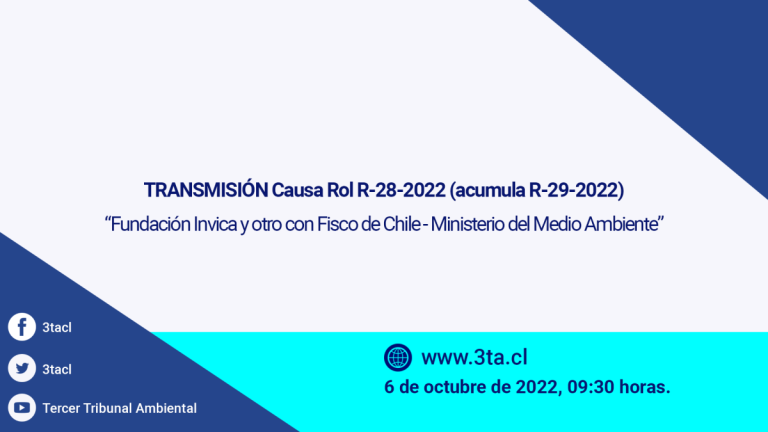 El Tribunal Ambiental de Valdivia pone a su disposición la transmisión de la audiencia vía videoconferencia en las causas “Fundación Invica y otro con Fisco de Chile – Ministerio del Medio Ambiente”, que se realiza el jueves 6 de octubre a las 09:30 hrs; ante los Ministros Sr. Javier Millar Silva; Sr. Carlos Valdovinos Jeldes; […]